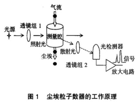塵埃粒子計數(shù)器是用來測量潔凈環(huán)境中單位體積內塵埃粒子數(shù)和粒徑分布的儀器。其基本原理就是光學傳感器的探測激光經(jīng)塵埃粒子散射后被光敏元件接收并產(chǎn)生脈沖信號,該脈沖信號被輸出并且放大,然后進行數(shù)字信號處理,通過跟標準粒子信號進行比較,將對比結果用不同的參數(shù)表示出來。儀器的測量參數(shù)設定、測量結果顯示、定時、按鍵、時間、日期、打印、數(shù)據(jù)存儲等均由內置微機(MCU)控制和實現(xiàn),儀器可以同時顯示環(huán)境的溫濕度并監(jiān)測報告激光粒子傳感器的工作狀態(tài)。